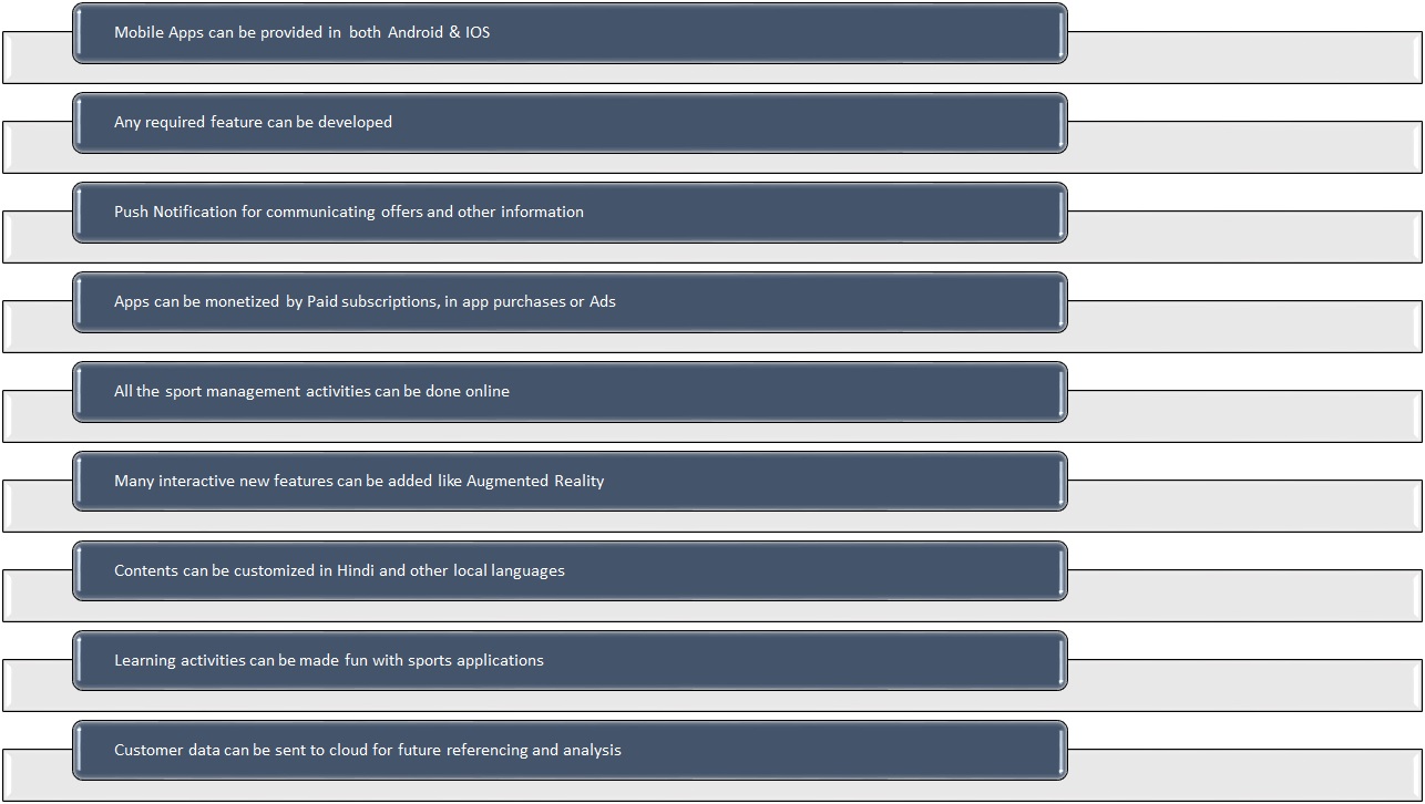 - Sports activities can integrated in single platform and centralized managing can be done